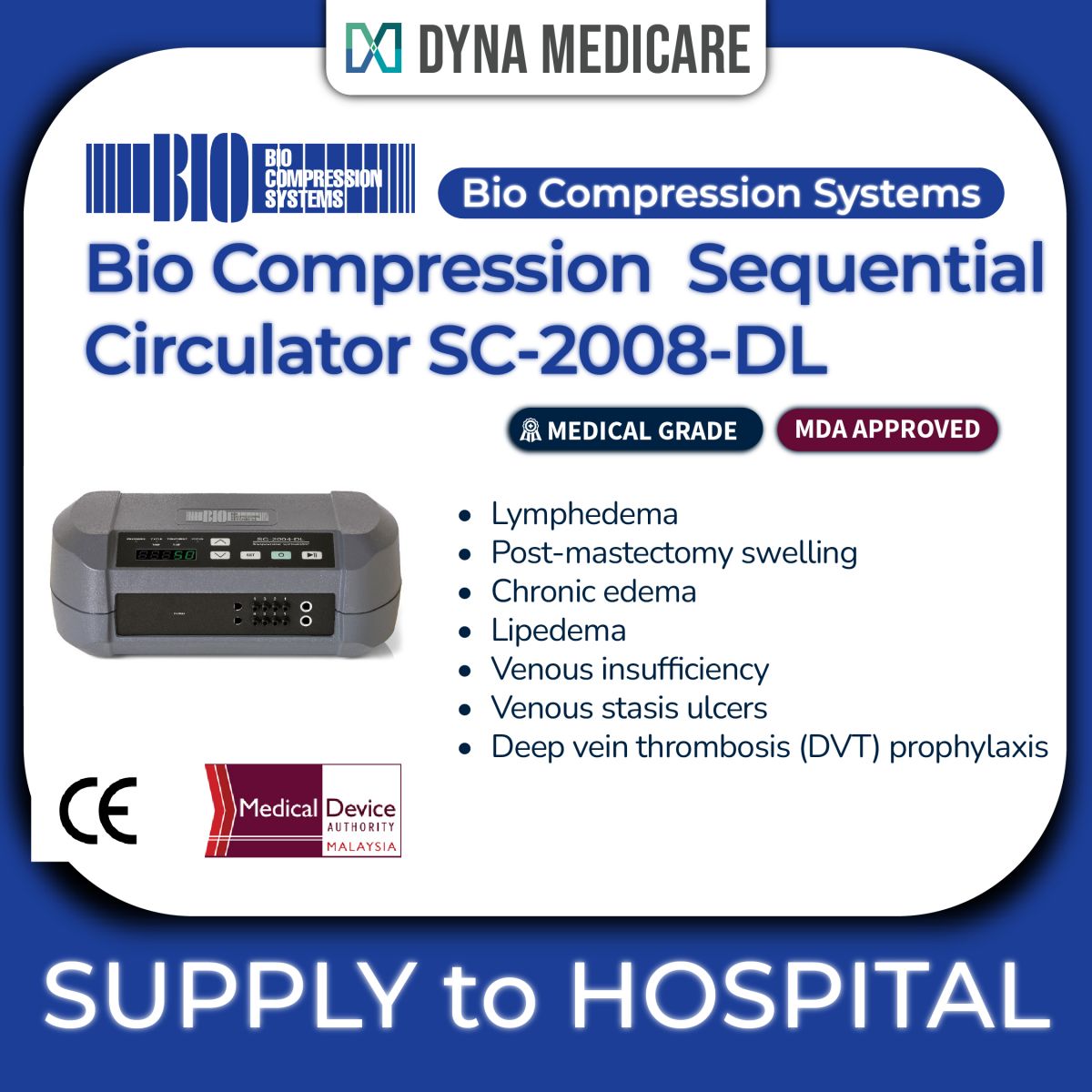 Bio Compression has been the leading manufacturer of pneumatic compression devices for almost 40 years. All of our pumps are lightweight and user friendly with a non-peristaltic action that mimics the body’s own natural function. This action helps to increase circulation and reduce edema to manage your symptoms and improve your quality of life. Compression therapy is used for the treatment of lymphedema, lipedema, venous insufficiency, wound healing, DVT prophylaxis, and many other circulatory disorders.