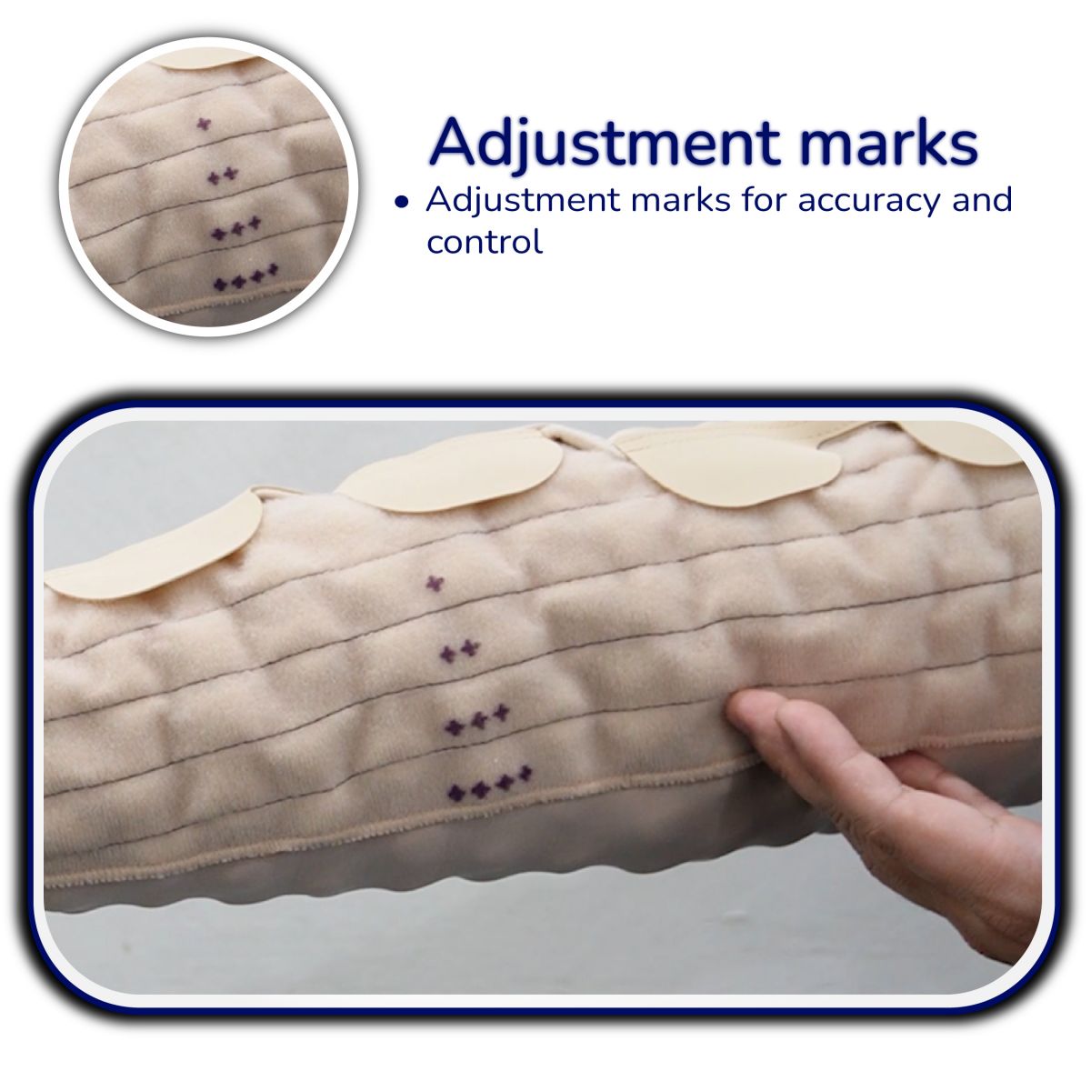 • compression by applying pressure to the limb, thus promoting the circulation of lymph and helping to maintain or reduce swelling.