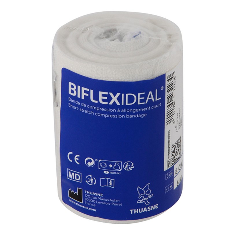 One-way short-stretch compression bandage, indicated in the treatment of vascular, lymphatic and traumatic conditions. The device is intended only for the treatment of the indications listed and for patients whose measurements correspond to the device dimensions