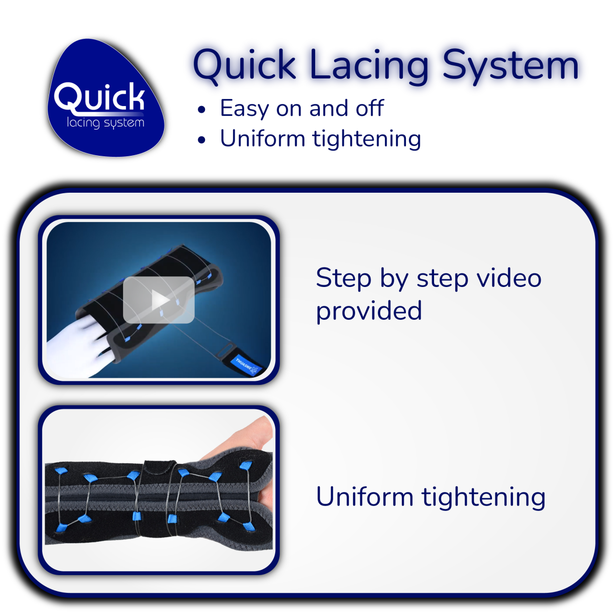 • Ease of application: patented Quick Lacing System* provides quick and even tightening.