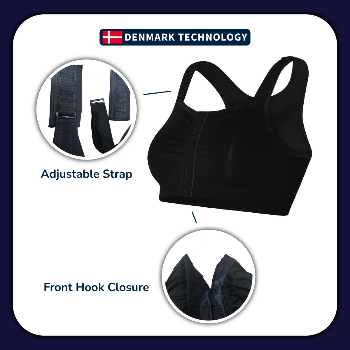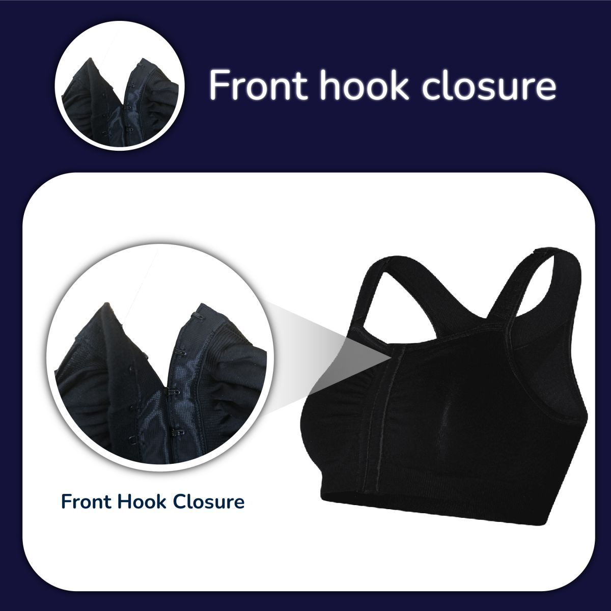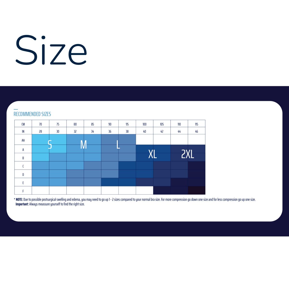 The Mary bra incorporate integrated support and compression zones for fixation of the breasts in the post surgical phase. Mary is front openable with two rows hook & eye (S-2XL) or three rows hook & eye (3XL-4XL) for adjustable sizing. The bra is fully openable, allowing easy application and easy examination of the surgical site.